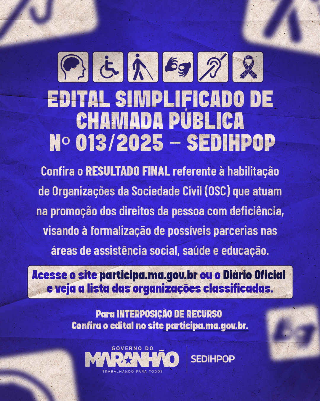 SECRETARIA DE ESTADO DOS DIREITOS HUMANOS E PARTICIPAÇÃO POPULAR – SEDIHPOP RESULTADO FINAL EDITAL SIMPLIFICADO DE CHAMADA PÚBLICA Nº 013/2025 – SEDIHPOP A SEDIHPOP, por meio da Comissão de Seleção,…