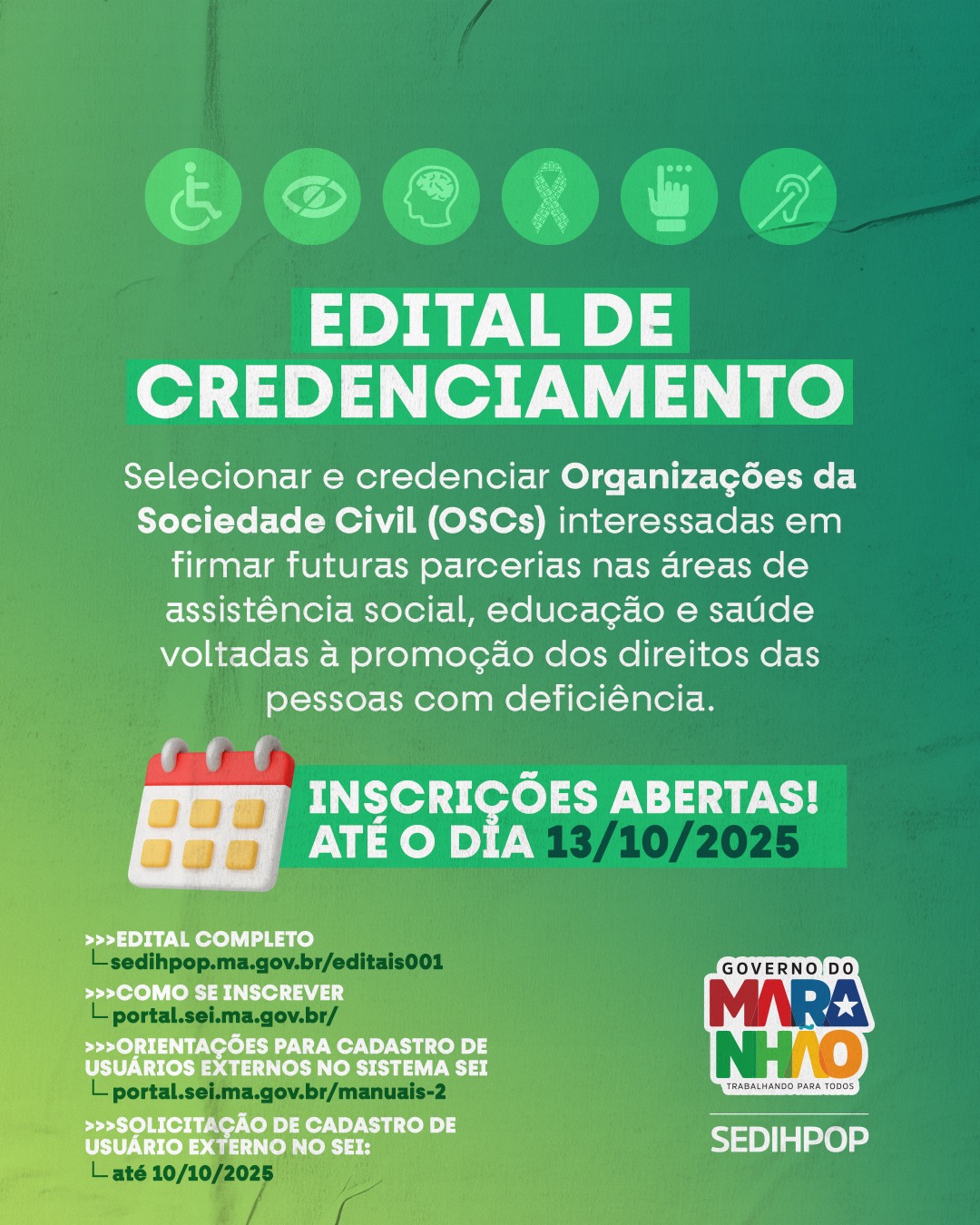 Edital de Credenciamento para OSCs com atuação na área de atenção às pessoas com deficiênciaEdital de Credenciamento para OSCs com atuação na área de atenção às pessoas com deficiência